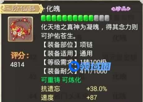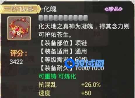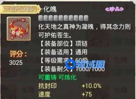 一阶仙器加速的属性有上面两种,速度分别为50和75两种,抗性分别有冰混忘睡四种值为10或者26,法力气血值都是3000