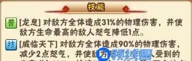 普:对敌方全体造成31%的物理伤害,并使敌方生命最高的敌人怒气降低1点
