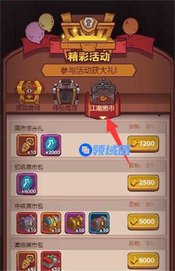 黑市是咸鱼之王的周轮换活动,玩家可以在这花费金砖购买稀有道具