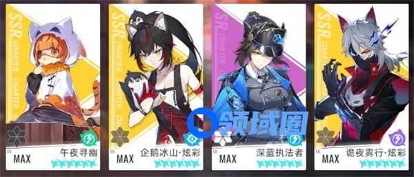 午夜寻幽(带乘胜追击)、深蓝执法者、企鹅冰山、诡夜雾行(挂件)料理带月鱼刺身(3~4回合)