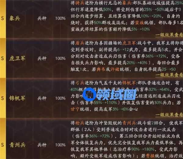 三国志战略版游戏中有骑兵、盾兵、弓兵、枪兵,每个兵种有3个特殊兵种,游戏的玩法对兵种的搭配思路非常讲究,需要玩家根据武将的特性选择适合的兵种,在有时候sss品质的兵种所带来的作用远不如s品质的兵种,就是因为和武将没有办法配合。游戏中新出的四大兵种在其中的作用可不小,每个都十分厉害,有着各种的特点,经过玩家的精心搭配可迸发出无穷的威力,治疗能力比较好的有青州兵、锦帆军,这两个种兵在作战过程中起到至关重要的作用,接下来为大家说明一下三国志战略版4大兵种介绍一览。
