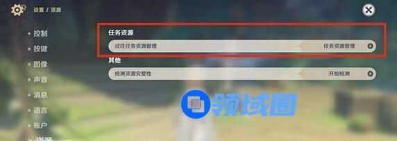 2、在游戏界面中找到【设置——资源——任务资源】;