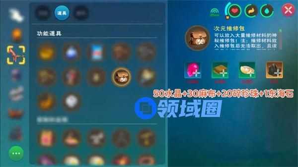 次元维修包=50水晶+30麻布+20碎珍珠+1东海石(制作后为绑定,不可以交易)
