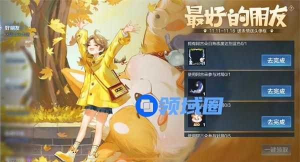 王者荣耀最近更新上线了新皮肤,这款皮肤整体的设计是走可爱偏向童心路线的,融入了很多童年的元素,能给玩家们带来一股温馨的感觉。游戏中新出的新皮肤是阿古朵的,品质为史诗皮肤,一名身穿黄衣的女孩带着自己的小狗到处冒险,可爱极了,也伴随着这款皮肤新出了一个主题活动最好的朋友,玩家可在其中获取稀有的头像框、互动道具,任务非常的简单,每天游玩阿古朵这个英雄角色打几盘游戏就可以了,基本每个玩家都能轻松完成这个任务获取奖励,接下来为大家说明一下王者荣耀最好的朋友活动介绍一览