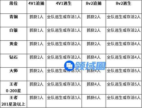 1、调整后,是否获得段位积分将只由玩家当局全队逃出+存活人数/抓获人数决定,让玩家的升段目标更清晰,想要上分的玩家在结算时就能够明确知道自己这局比赛有没有加分(具体加分规则将在游戏结算界面进行说明);