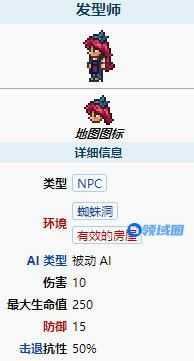 在泰拉瑞亚的世界里,玩家要想npc角色入住到你附近的房屋里,都是要满足指定的条件才行,第一个就是无人住的房屋,没有就建造一个,床也必须有,然后再找到发型师便可,发型师位于蜘蛛洞,需要玩家前往解救才行,发型师能帮助玩家随时改变发型,体验不一样的穿着打扮,头发的颜色也是能改变的,其的武器是剪刀,死亡就会掉落该武器,玩家一开始进入蜘蛛洞的时候基本不能一下就找到她,必须先把蜘蛛洞的蜘蛛网全部清理掉,在调查周围有没有敌人才行,发型师很容易死,接下来为大家介绍一下泰拉瑞亚发型师入住条件一览。