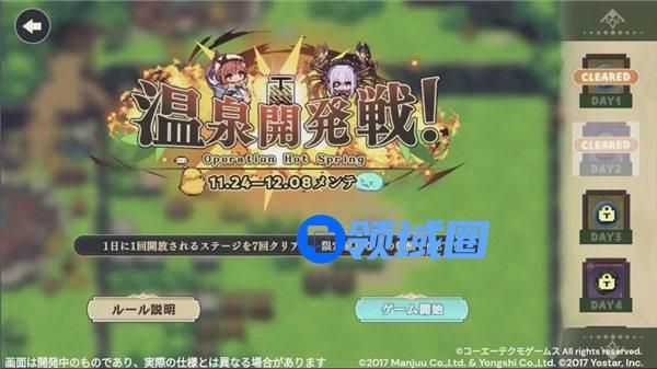 活动期间,11月30日为止每日开放一场新游戏,共计7场。完成小游戏可获得联动家具-「小型温泉」与外观装备等奖励;