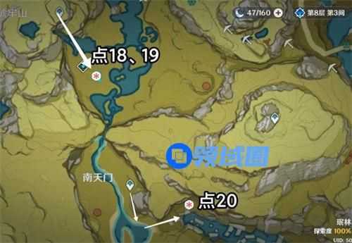 点18在大树上面,建议从虎牢山的传送点飞下去省事。