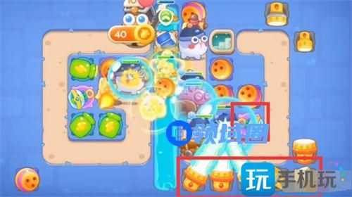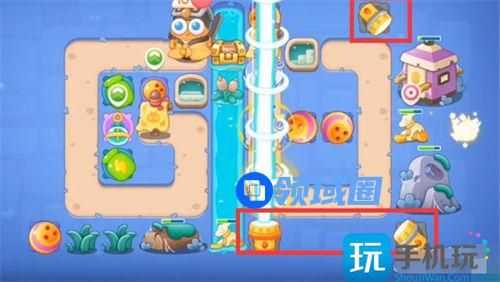 6、然后我们第六第七波有钱升级炮塔,中间河道的宝箱打掉,出现冰锥塔。