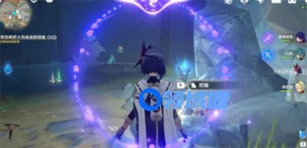 1、我们首先来到副本地图中寻找到下图中紫色池子所在的具体位置,找到后来到池子的中间最顶端的位置。