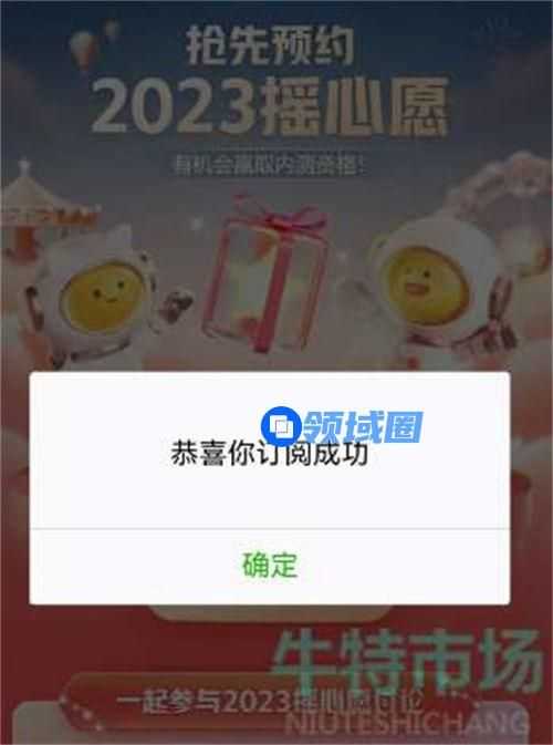 3、预约成功之后会出现弹框提示:恭喜你订阅成功,随着活动开启即可参与到英雄联盟手游摇心愿活动;