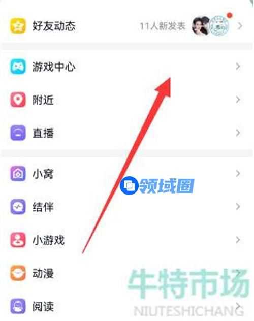 1、首先我们需要打开手机QQ,在动态栏目当中点击游戏中心进入;