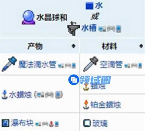 以上就是泰拉瑞亚水蜡烛制作方法介绍的全部内容,更多精彩内容攻略请持续关注领域圈,小编将持续更新更多相关攻略。