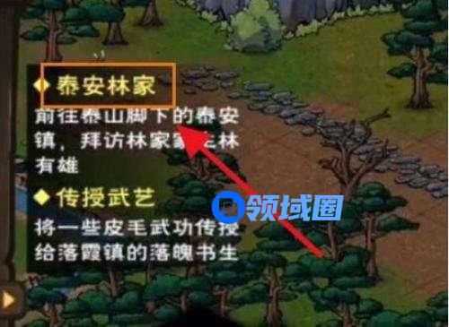 3、进入泰安林家林宅(30,35),选择林有雄进行对话。