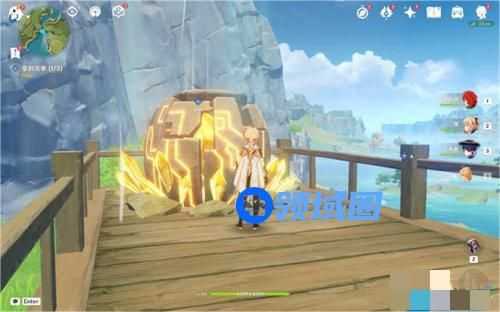 传送至璃月石门处锚点,用岩主的元素战技激活一旁的机关,开启风场。