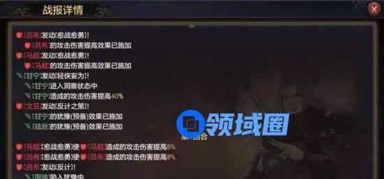 以甘宁在一场战报中的表现为例,吃到了反击之策的甘宁,在前三回合中依然打出了自己的双战法,没有减少任何输出,仅从这点上来说甘宁就要比多数武将多输出三个回合,而轻侠妄为高达40%的攻击加成也让他有了驾驭任何输出战法的资本,无论是奢侈的一骑雄兵还是平民化的箭岚劫寨,都不失为一个好选择。需要注意的是轻侠妄为属于指挥战法,会与大赏三军的提升冲突,因此如需进一步搭配辅助类战法应选择神兵天降或者鹤翼等等。