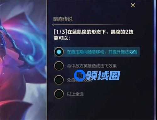 以上就是英雄联盟手游暗裔凯影答案详情一览的全部内容,更多精彩内容攻略请持续关注领域圈,小编将持续更新更多相关攻略。