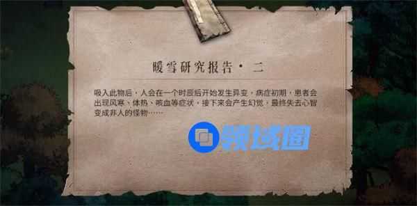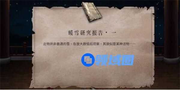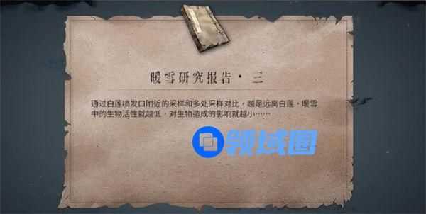 见闻:暖雪研究报告·一+暖雪研究报告·二+暖雪研究报告·三= 暖雪(解锁奖励:圣物·动力核心)