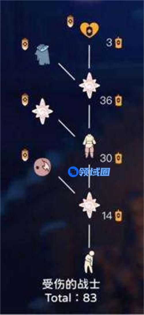 1、受伤的士兵先祖,兑换所有的物品需要83个季节蜡烛。