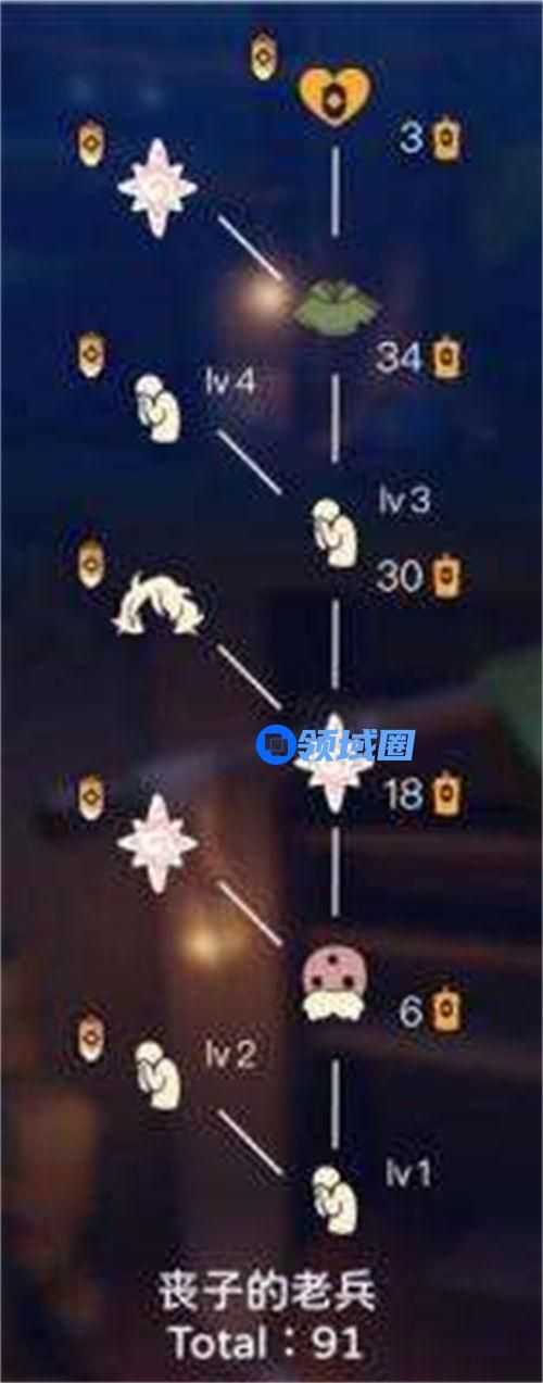 2、丧子的老兵,兑换全部道具需要91个季节蜡烛。