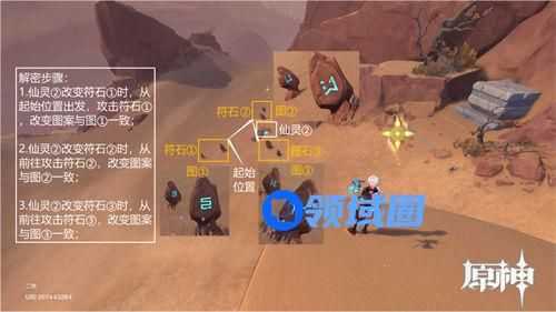 按图中指引,完成符石解密,跟随引导仙灵②;