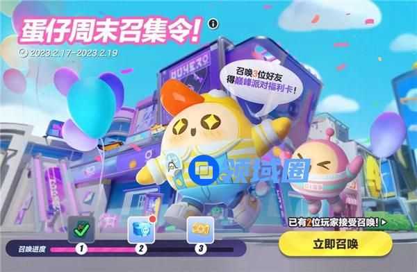 周末看到蛋搭子不在线,心里总是空落落的?【蛋仔周末召集令】现已开启,今日起至2月19日(周日)23:59:59召唤3位蛋搭子登录游戏,即可得【巅峰派对福利卡】!