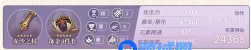 1、如果大家在游戏中给赛诺使用的是专武【赤沙之杖】带【饰金四件套】,毕业面板如下: