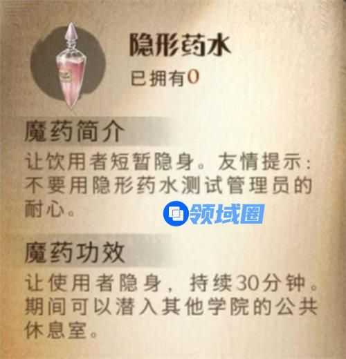以上就是哈利波特魔法觉醒隐身药水效果详情介绍的全部内容,更多精彩内容攻略请持续关注领域圈,小编将持续更新更多相关攻略。