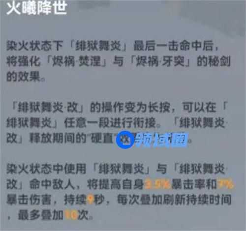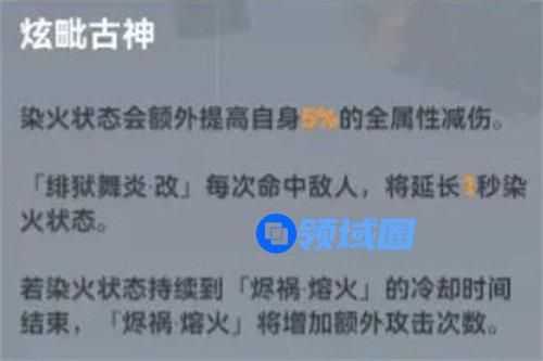 连续染火是这个分支最大的特点,可以使技能全程附加染火效果。