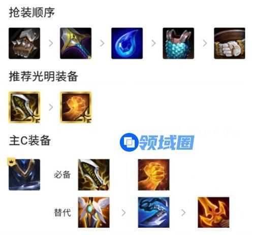 主C螳螂:正义之手、无尽和复活的盔甲,双正义之手和复活的盔甲也是一个不错的选择。正义之手在增加血液还是改善伤害都有很好的效果,无尽可以大大改善螳螂的伤害,复活的盔甲也提高了螳螂的容错率。