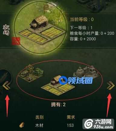 (提示:建造时,可以通过左右的滑动来切换“木材场”“农场”和“铁矿场”的选择)