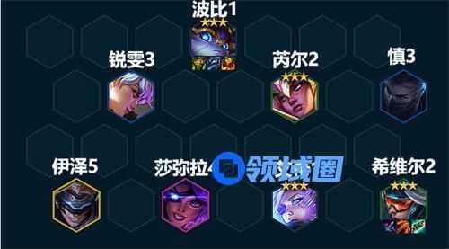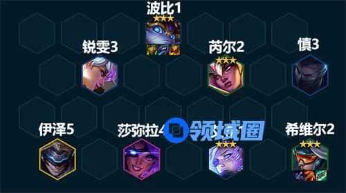 阵容组成:伊泽、锐雯、波比、莎弥拉、艾希、芮尔、慎、希维尔