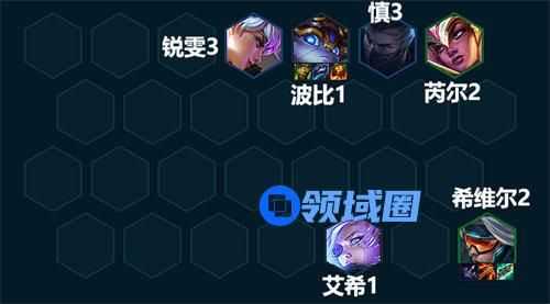 阵容组成:锐雯、芮尔、波比、慎、艾希、希维尔