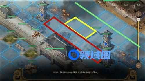肉盾武将,考虑放置在城门后2格,如果对面是近战流派的话,可以考虑放置到城门后3格;如下图所示:绿线后为远程武将放置区域,黄框内为骑兵武将放置区域,红框内为肉盾型武将放置区域;.