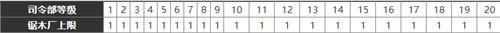 1、不同司令部等级下,锯木厂(Sawmill)可以建造的数量上限: