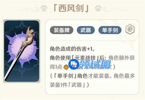 西风剑作为七圣召唤中新加入的支援卡,带来的增益是很明显的,可让装备者在使用元素技能时充能加1,就是说可一下子就释放更强的招式,一般情况下一回合的战斗只能增加1点,可使对局的节奏加快。当然也不是所有的角色都能使用该卡,必须是单手剑角色,如迪卢克、迪亚等角色可使用,卡牌的使用费用为3,给玩家带来的收益很值,卡组中加入这张卡,将给你带来快节奏的战斗体验,玩家之间的较量变得多样性,可供游玩的卡组选择也随之增多,尽情感受卡牌对战玩法的魅力,接下来为大家说明一下原神七圣召唤西风剑效果介绍。
