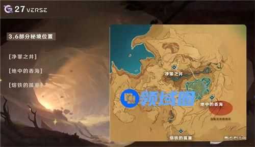 2、3.6「须弥」地区将开放「荒石苍漠]和「浮罗囿」,全新秘境“净罪之井”应该也是在这两个新场景中。