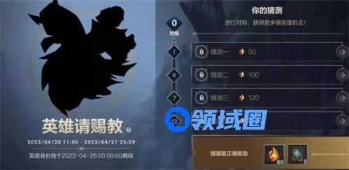 介绍:这个活动已经推出了多次,玩家需要根据活动页面左侧的黑影轮廓猜测出对应的英雄,一共有4次猜测的机会(可以通过游戏对局来获得猜测的次数)。