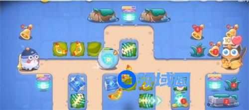 中间的祈祷灯亮起后,用回旋镖打开右边的路,鱼骨刺锁住下面的钱袋,障碍物拆除顺序图: