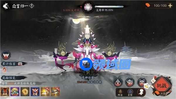 ※挑战一言主过程中,每隔一定时间将开启一次恶神论道;若帮助言灵做出正确的选择的大人占大多数,可直接降低一言主5%支持率。