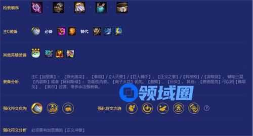 主C【加里奥】: 【珠光莲花】,【泰坦】/【大天使】/【巨人捕手】,【正义之拳】/【科技枪】/【汲取剑】。 辅助三星【内瑟斯】或者【阿利斯塔】: 功能性肉装。【离子火花】优先。【救赎】、【日炎】。 其他:【费德提克】可以用【佛耶戈】、【索尔】过渡,带多余法强装备。