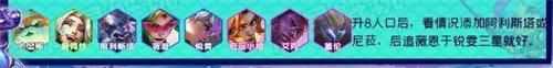 升8人口后,看情况添加阿利斯塔或尼菈,后追薇恩于锐雯三星就好。如果有淘气转职8人口可补纳尔4淘气控制能力逆天。有幻灵转给予盖伦开7幻灵。