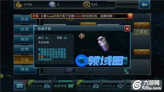 该手雷虽名字叫高爆手雷但伤害还是低得可怜,平民玩家比较值得入手,可以用金币在商城买到
