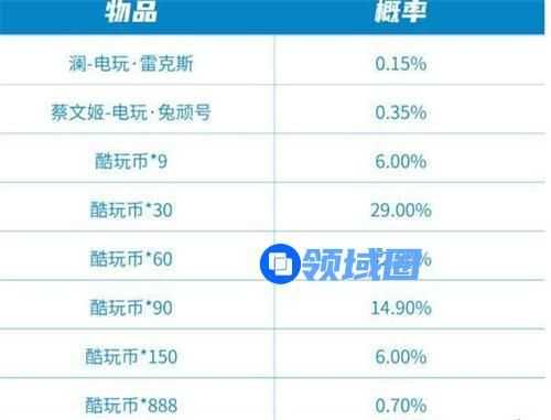 2:具体的概率如图所示,这个没有保底这一说,唯一的保底方式就是开除酷玩币然后我们去使用币兑换皮肤;