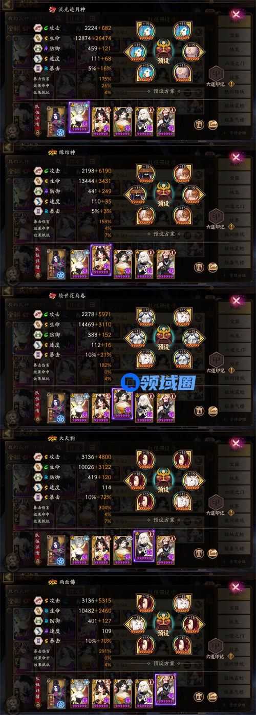 阵容:流光追月神、缘结神、绘世花鸟卷、两面佛、大天狗