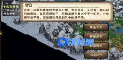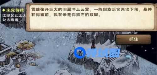 喂雪雕11颗白橡果[梅岭(5,6)采集,12小时cd],雨天再去靠近雪雕会被带进一个山谷,靠近房屋时会触发战斗(四个弱鸡木人)