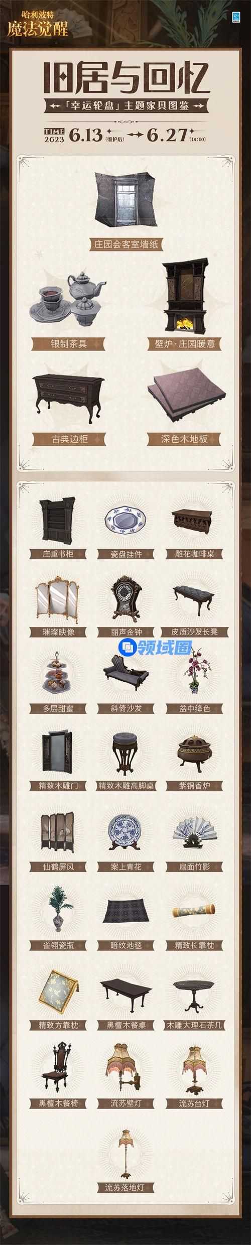 -开启家装盛礼,享受非凡装潢体验。当巫师抽中家具大奖,即可获得本期最珍贵的5件家具,即“庄园会客室墙纸”、“银制茶具”、“壁炉·庄园暖意”、“深色木地板”和“古典边柜”。