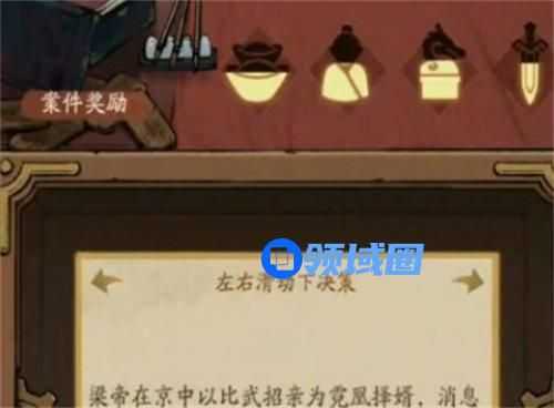 1、首先注意案件奖励的右边有元宝、半人像、龙符、宝剑,刚开局时三个均为半亮。