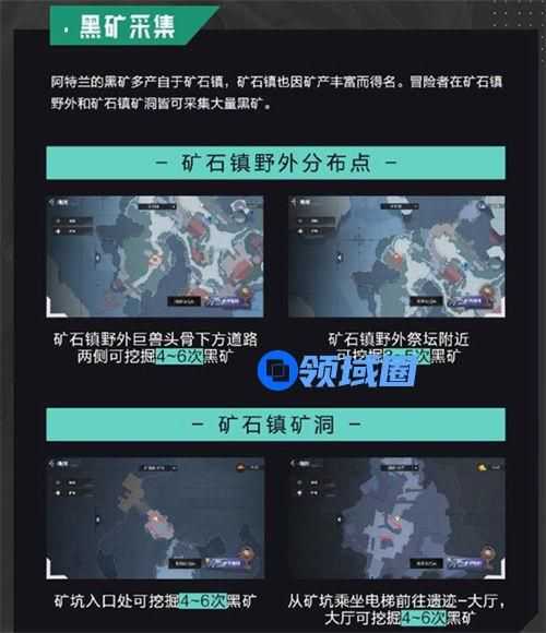 1、黑矿:可以前往矿石镇,里面能找到足够的黑矿,分布点如图所示: