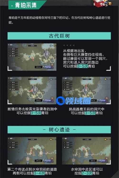 3、青珀:是千万年前动植物在阿特兰留下的印记,寻找路线可以按照下图进行: